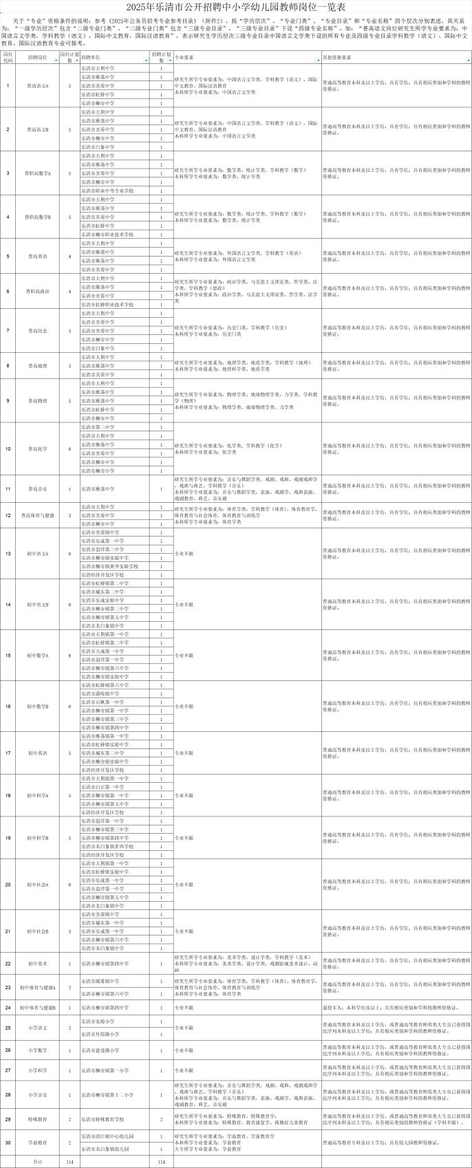 乐清市人力资源和社会保障局关于2025年公开招聘中小学幼儿园教师的公告