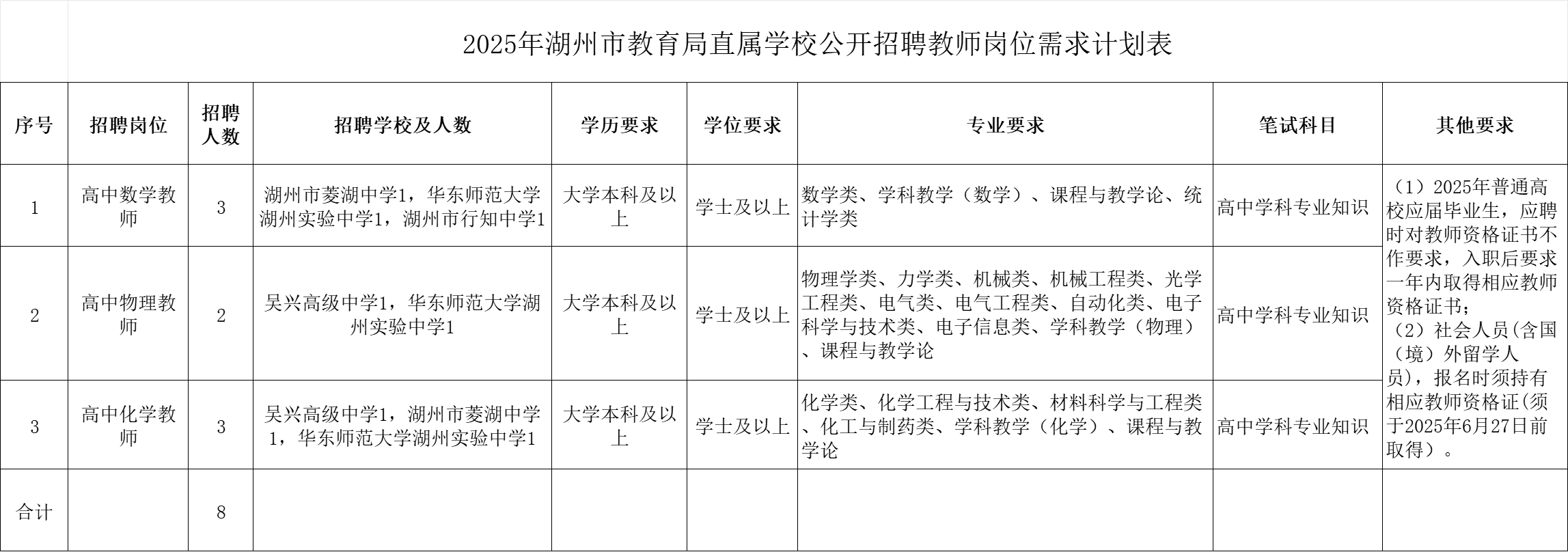 2025年浙江省湖州市教育局直属学校公开招聘教师公告