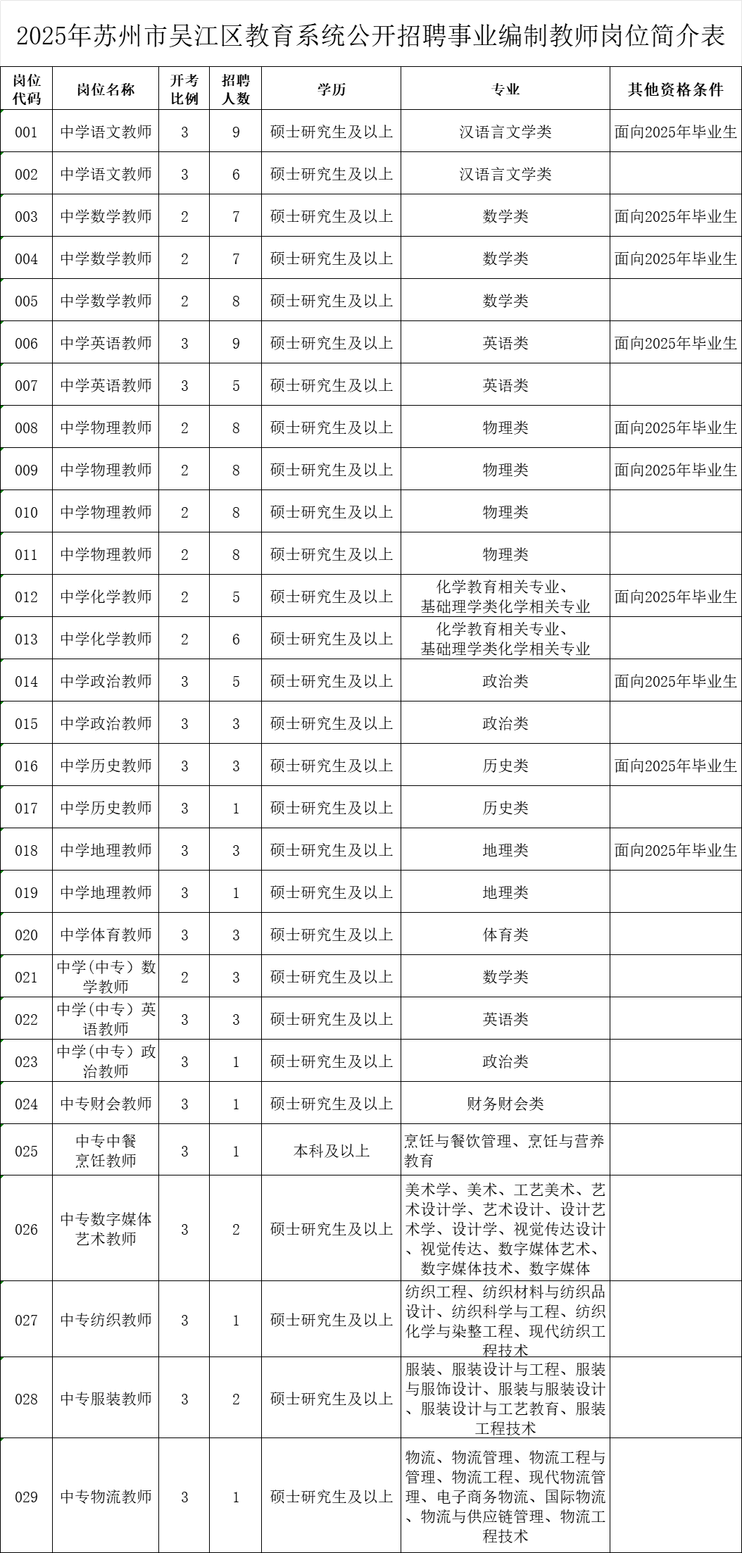 2025年苏州市吴江区教育系统公开招聘事业编制教师公告