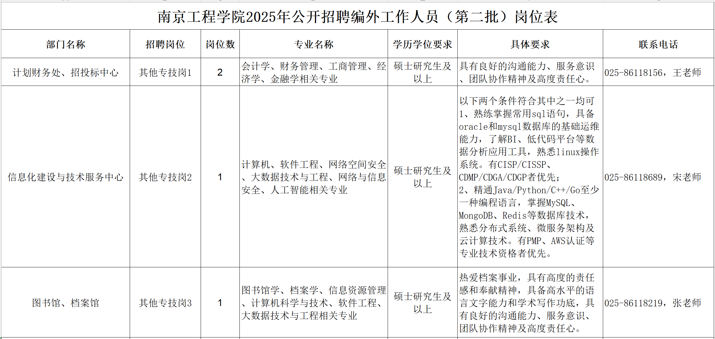 因学校工作需要,现将2025年公开招聘编外工作人员(第二批)有关事宜公告如下: