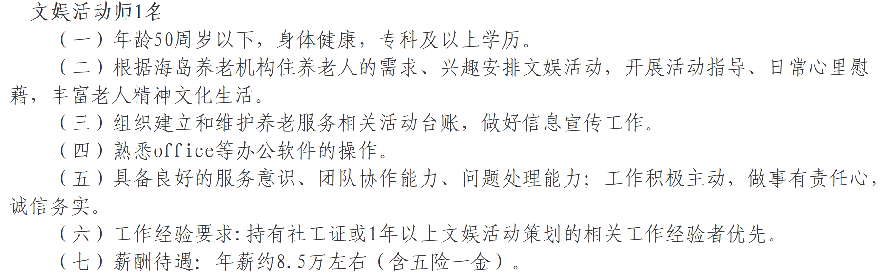 舟山市普陀区民政局代管国有企业(区海福社会福利事务服务有限公司)决定面向社会公开招聘合同制工作人员1名。现将有关事项公告如下:
