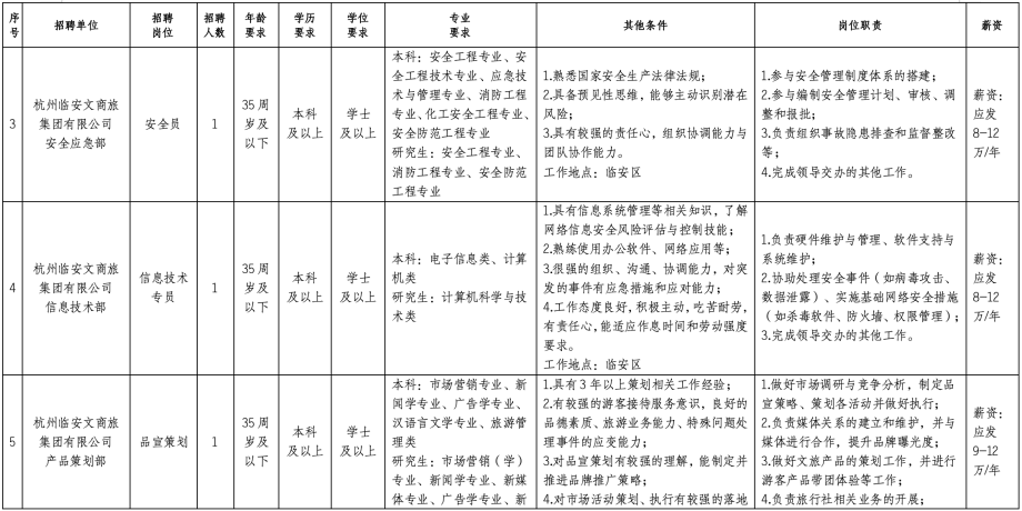 本次招聘包括文商旅集团本级及下属公司在内4家企业,计划招聘10名工作人员。