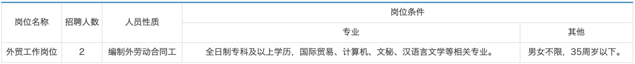 因工作需要,椒江区贸促会决定面向社会公开招聘编制外工作人员。现将具体事项公告如下: