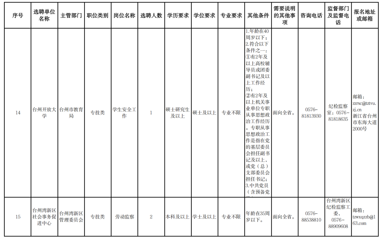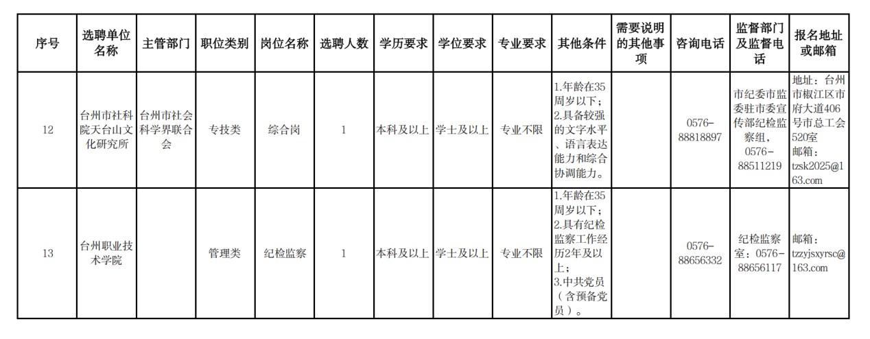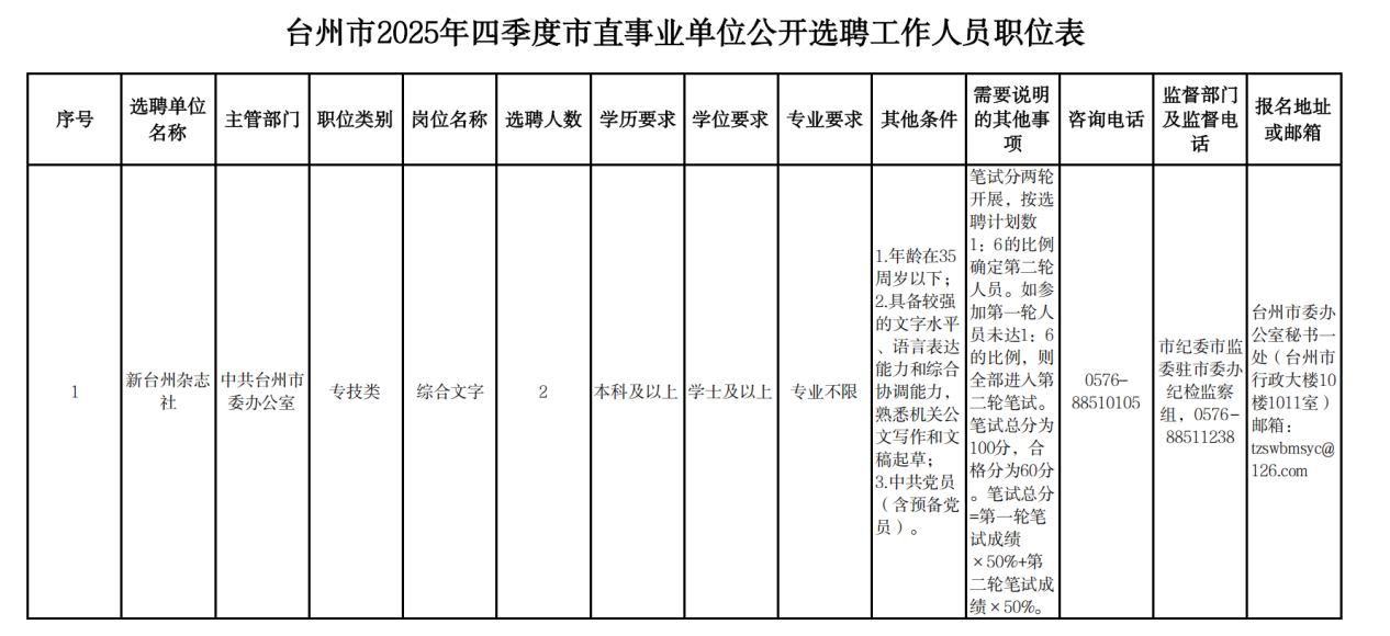 台州市2025年四季度市直事业单位公开选聘工作人员公告(一)