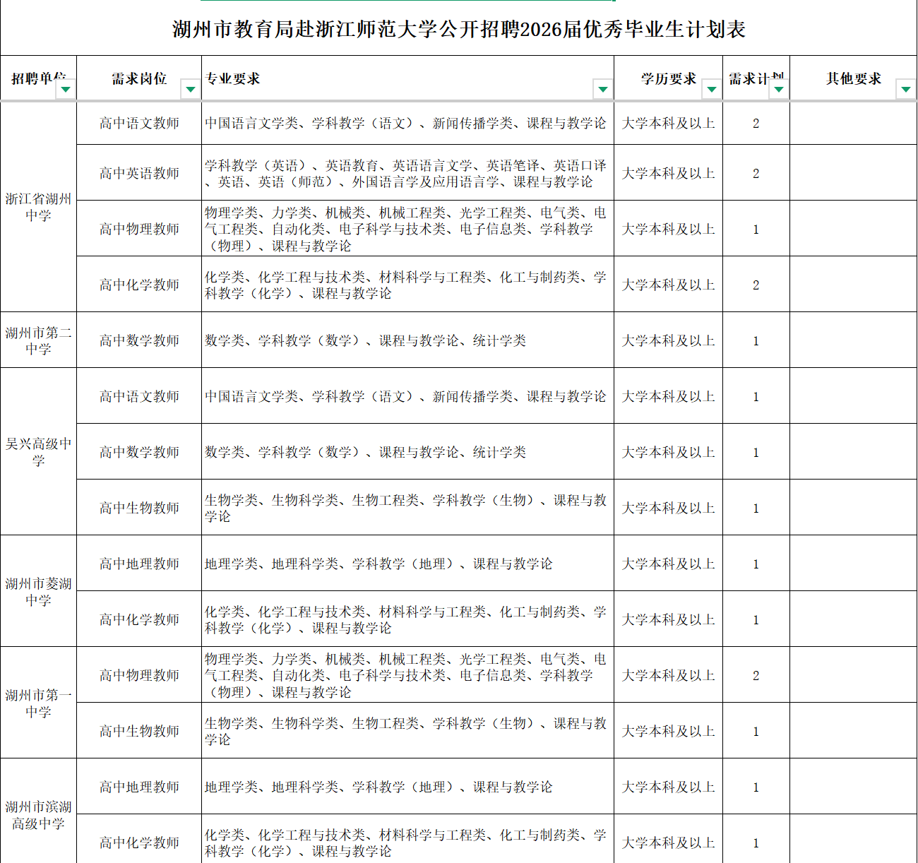 湖州市教育局赴浙江师范大学公开招聘2026届优秀毕业生公告