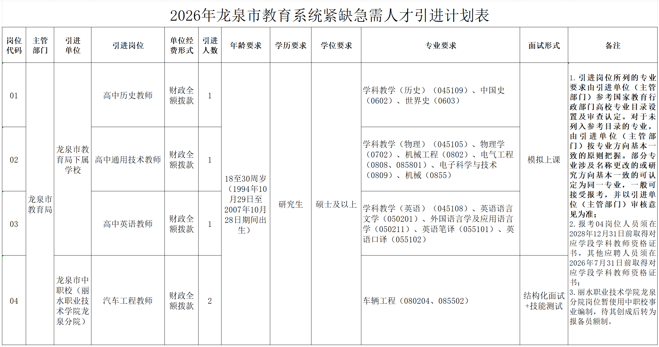 2026年龙泉市教育系统紧缺急需人才引进公告