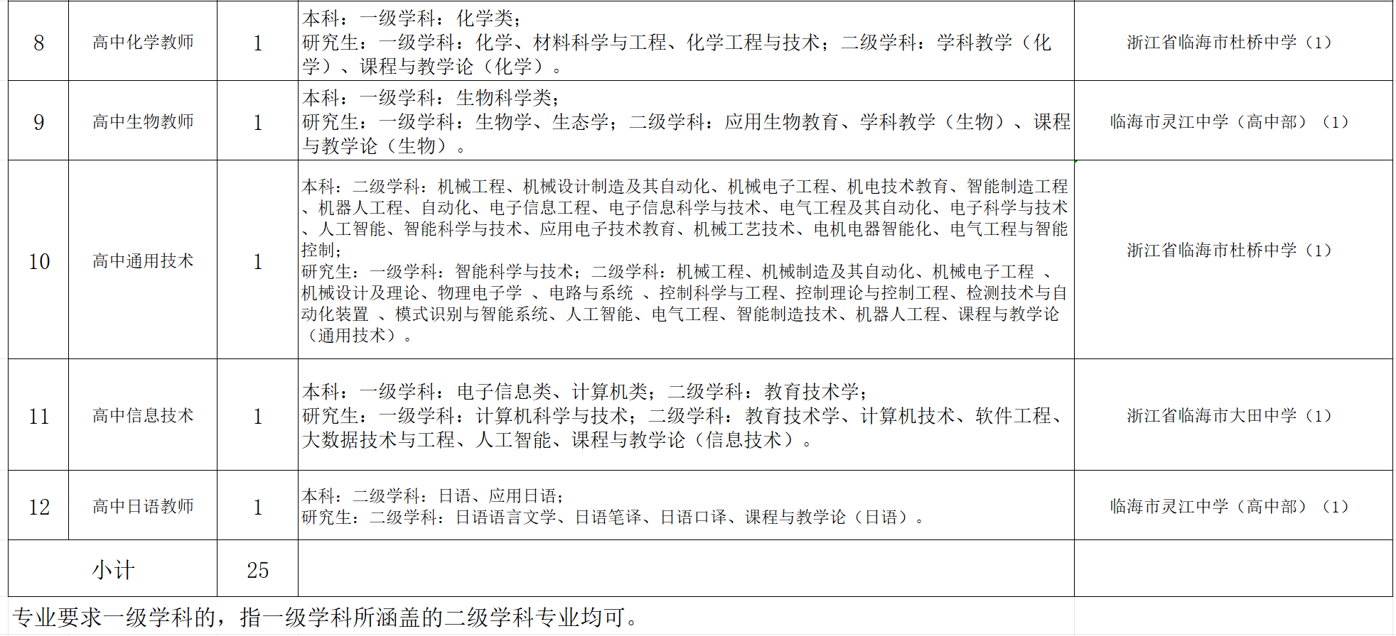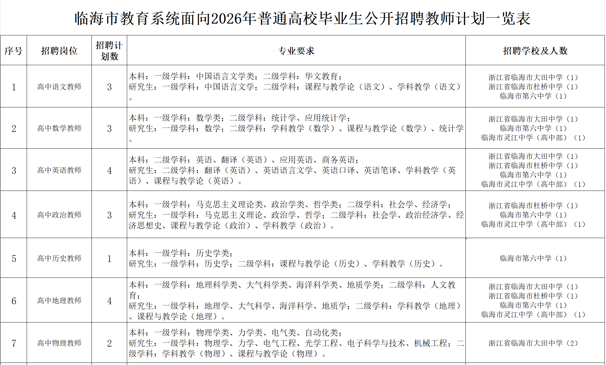 临海市教育系统(高中)面向2026年普通高校毕业生公开招聘教师公告