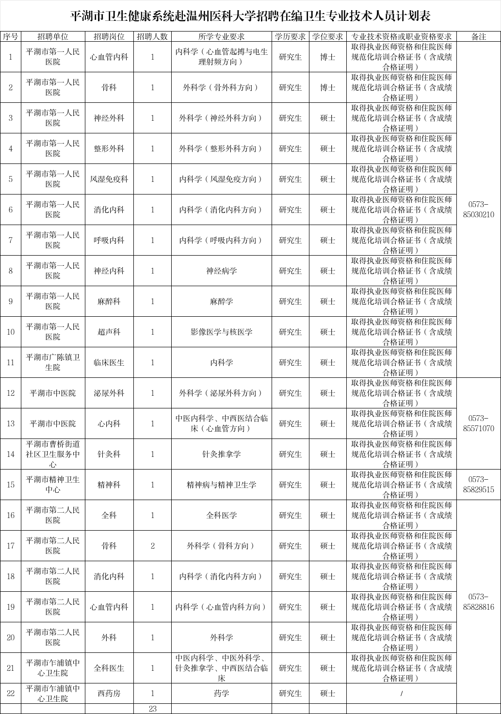 (一)招聘人数:23人