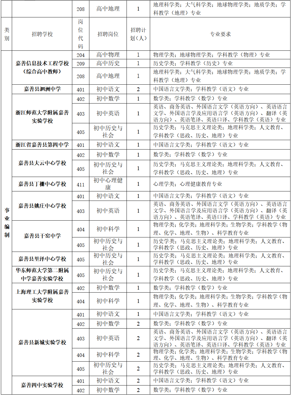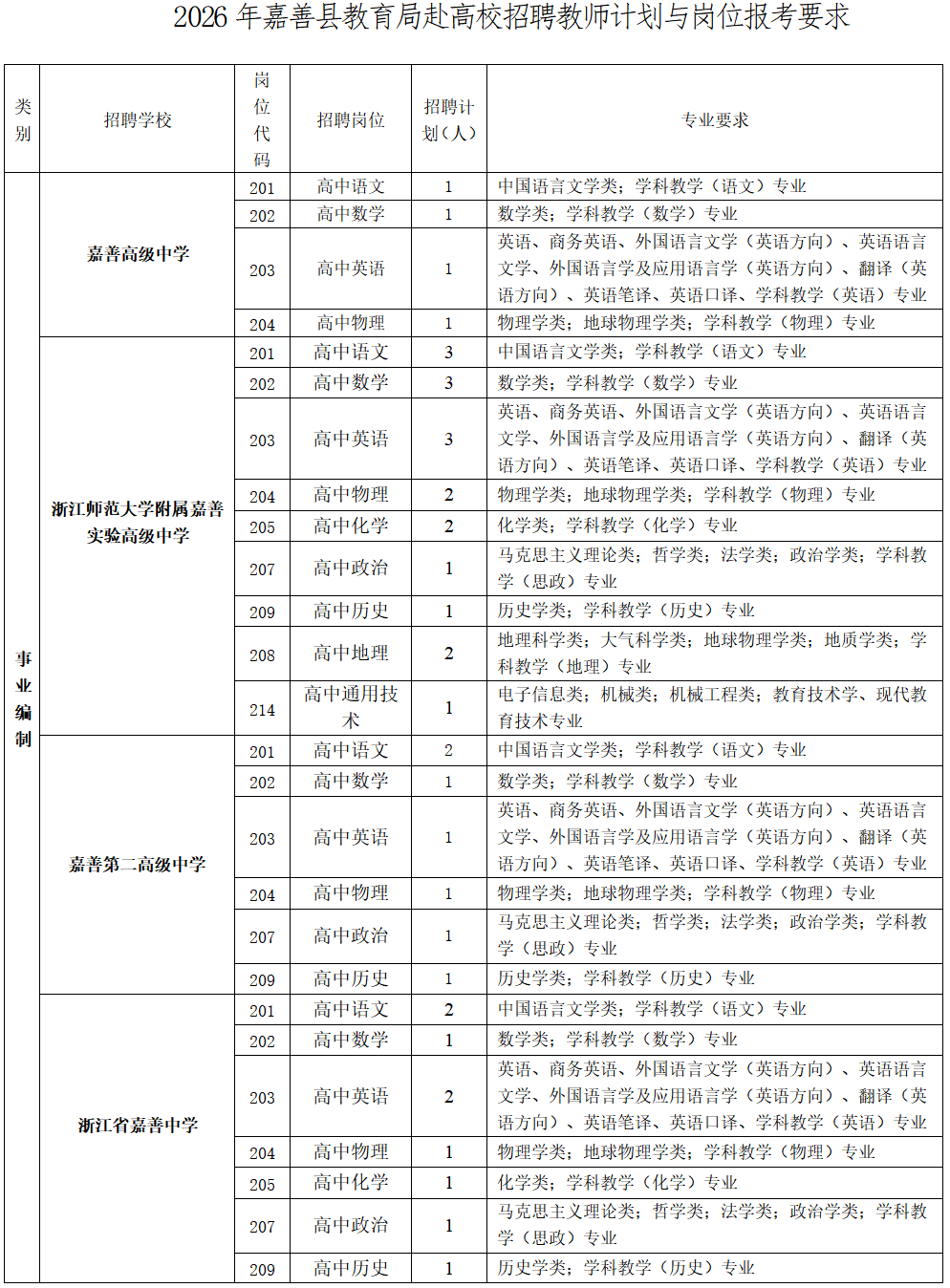 嘉善县教育局2026年嘉善教育系统赴高校招聘优秀教师公告(第一批)
