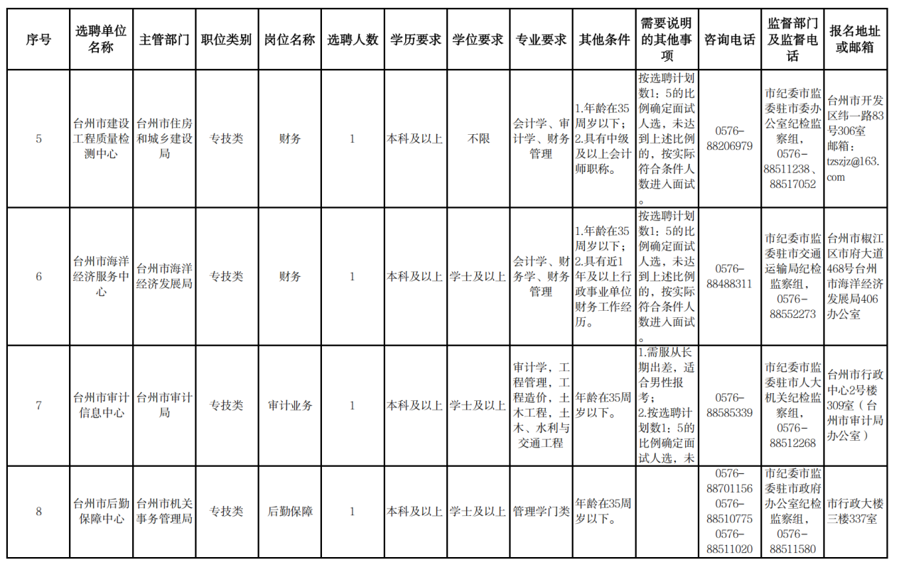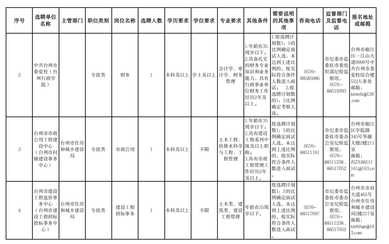 05 台州市四季度市直事业单位