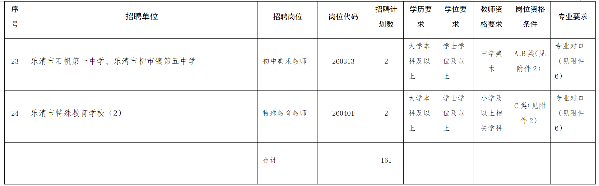 (一)招聘人数:161人