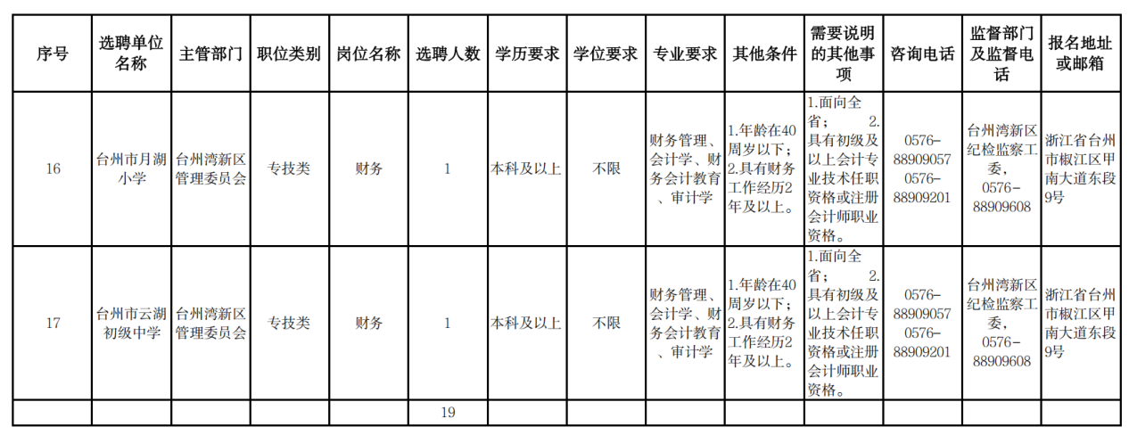 (一)招聘人数:19人