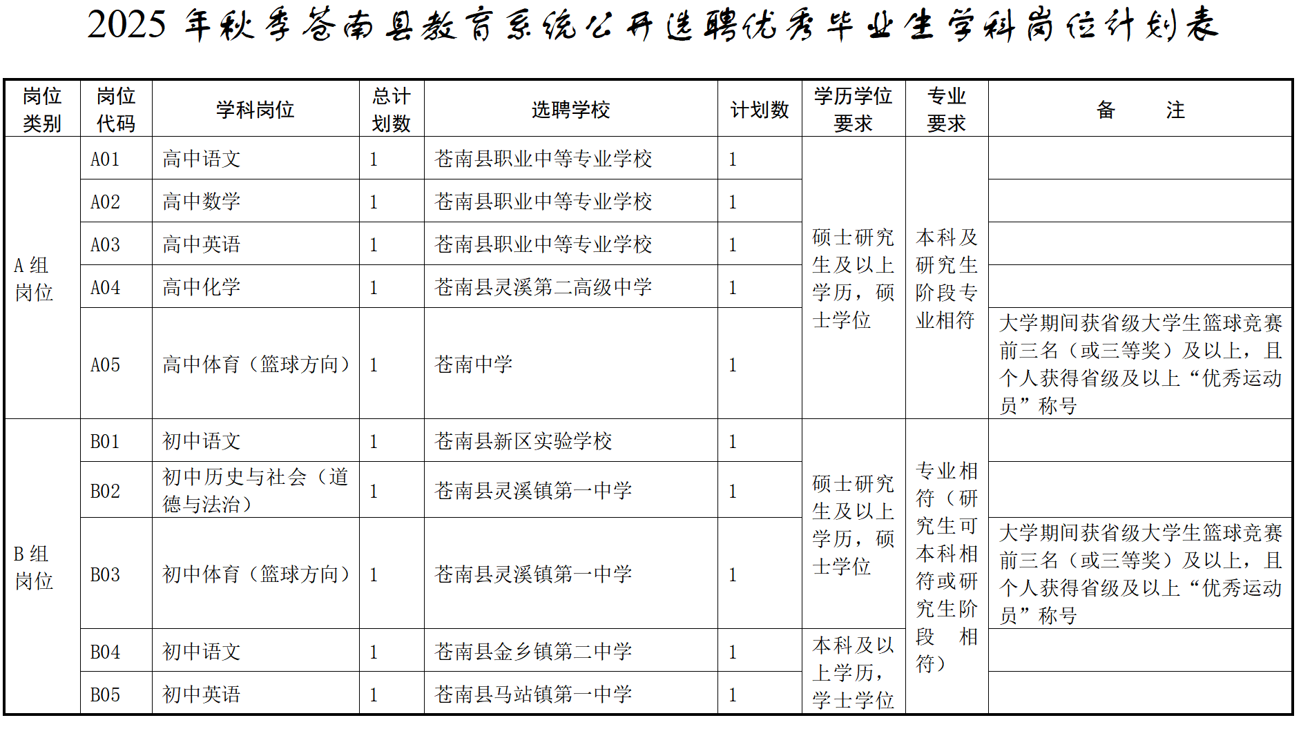 2025年秋季苍南县教育系统公开选聘优秀毕业生公告