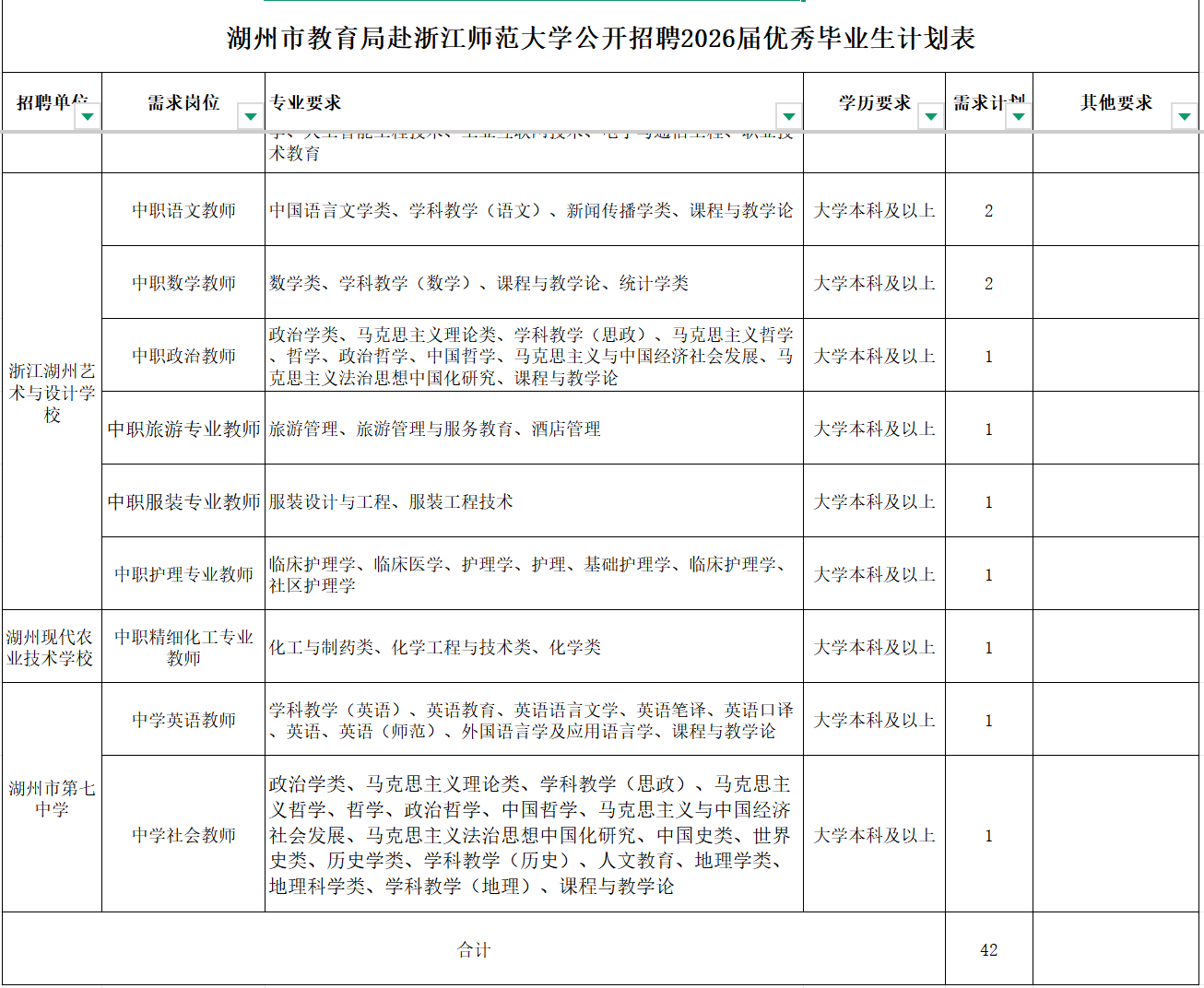 (一)招聘人数:42人