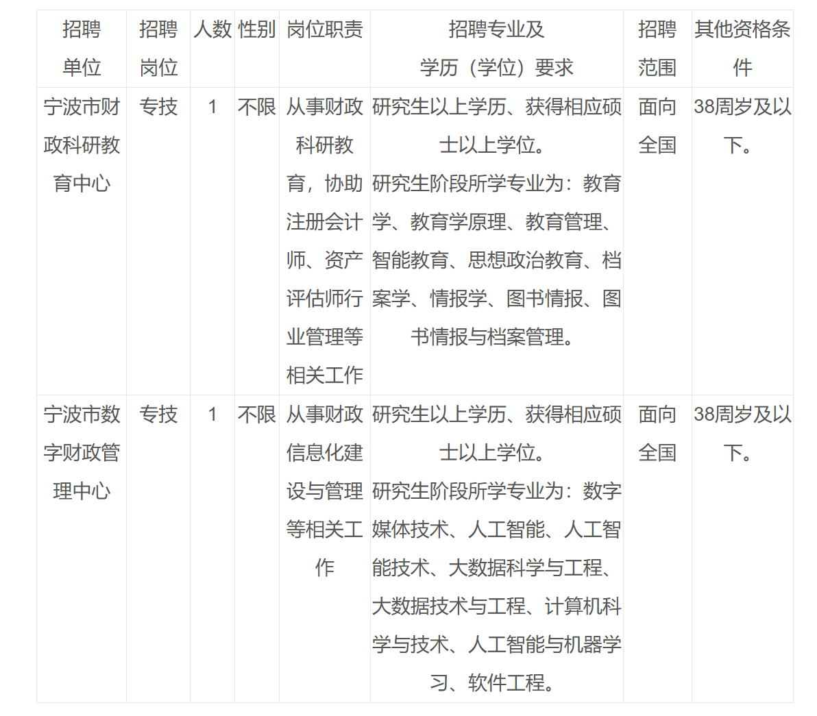 宁波市财政局下属事业单位公开招聘工作人员公告