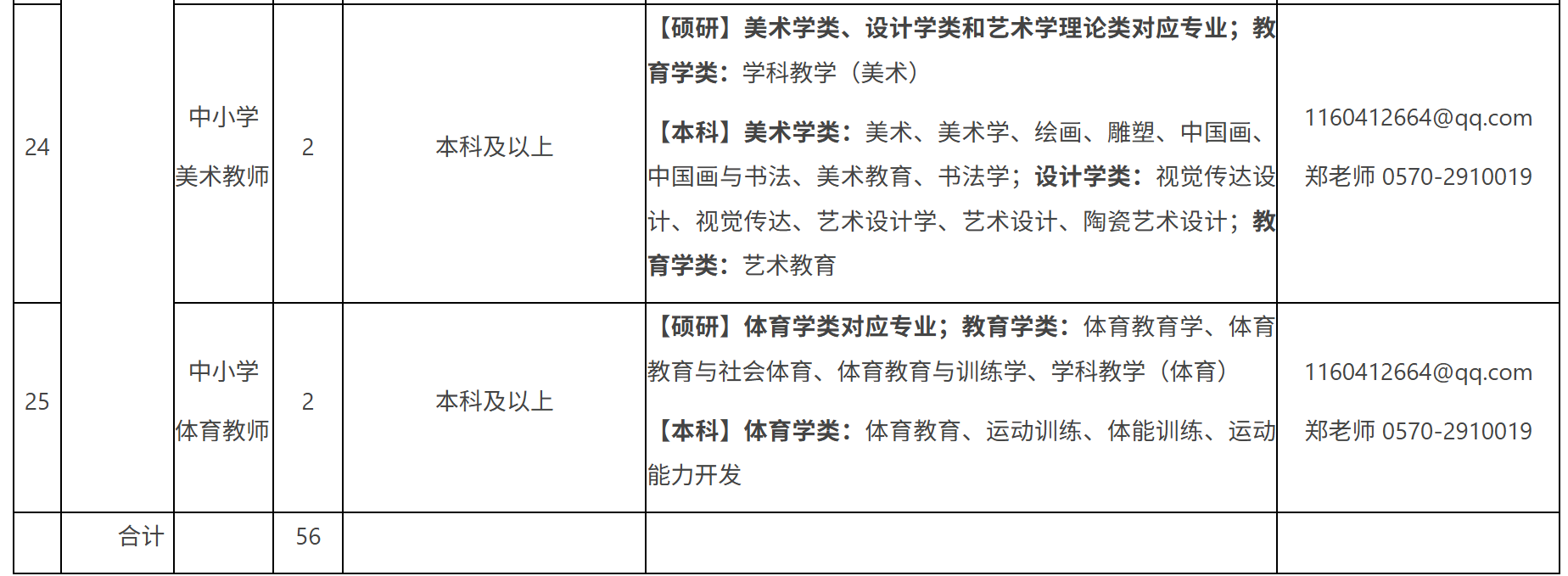 (一)招聘人数:56人