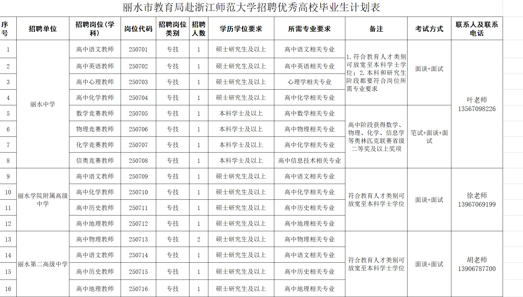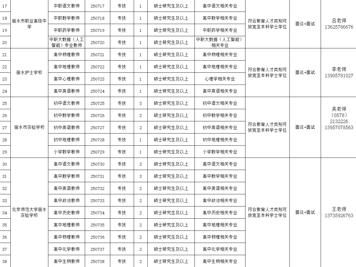 丽水市教育局赴浙江师范大学公开招聘高校优秀毕业生公告(丽教人202507号)