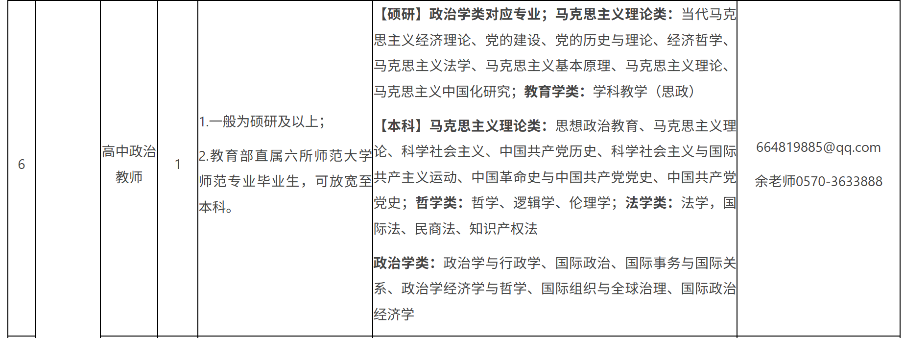 (一)招聘人数:6人