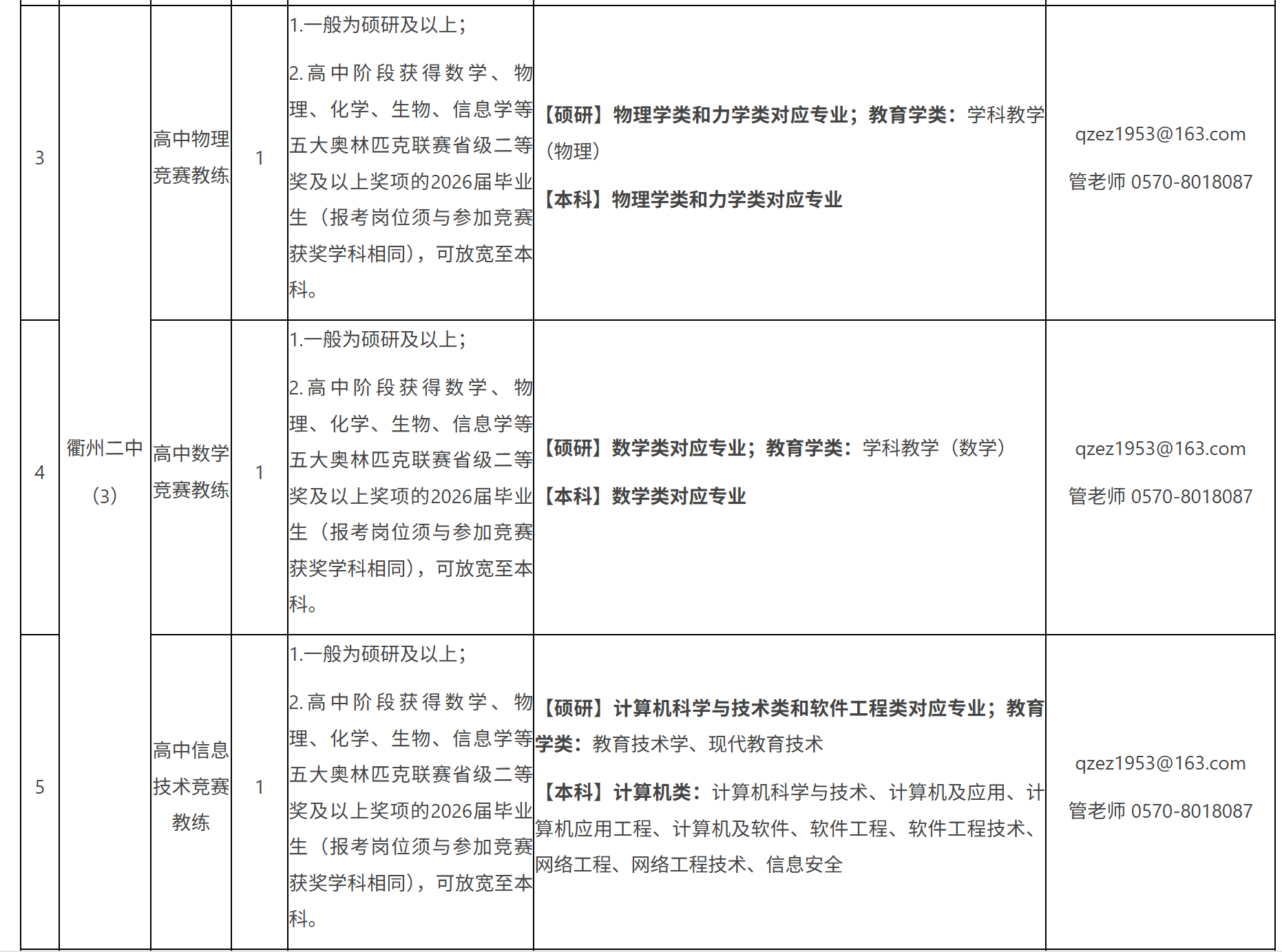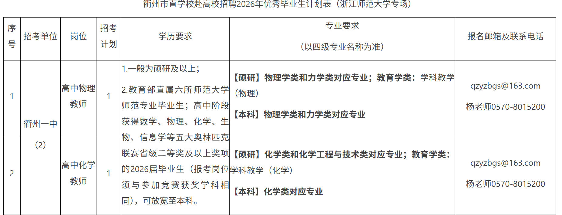 衢州市教育局关于市直学校赴高校面向全国招聘2026年优秀毕业生公告(浙江师范大学专场)