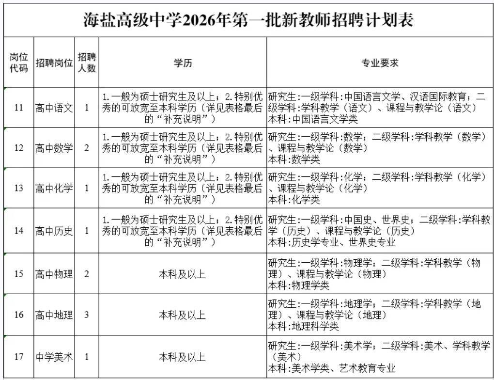 海盐高级中学2026年第一批教师招聘公告