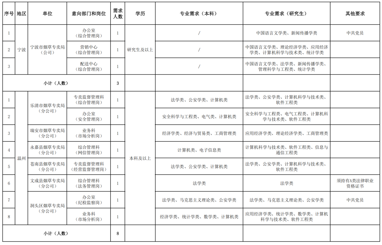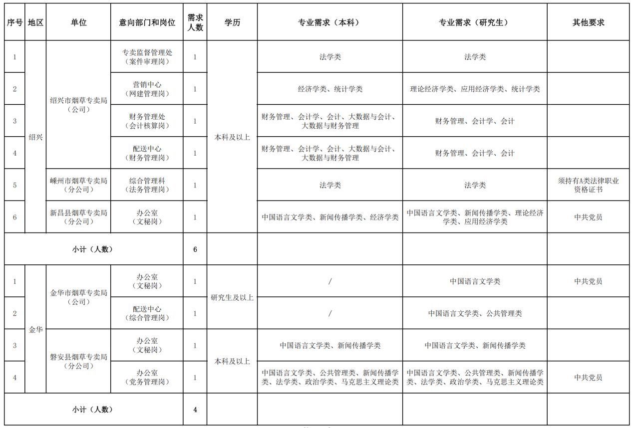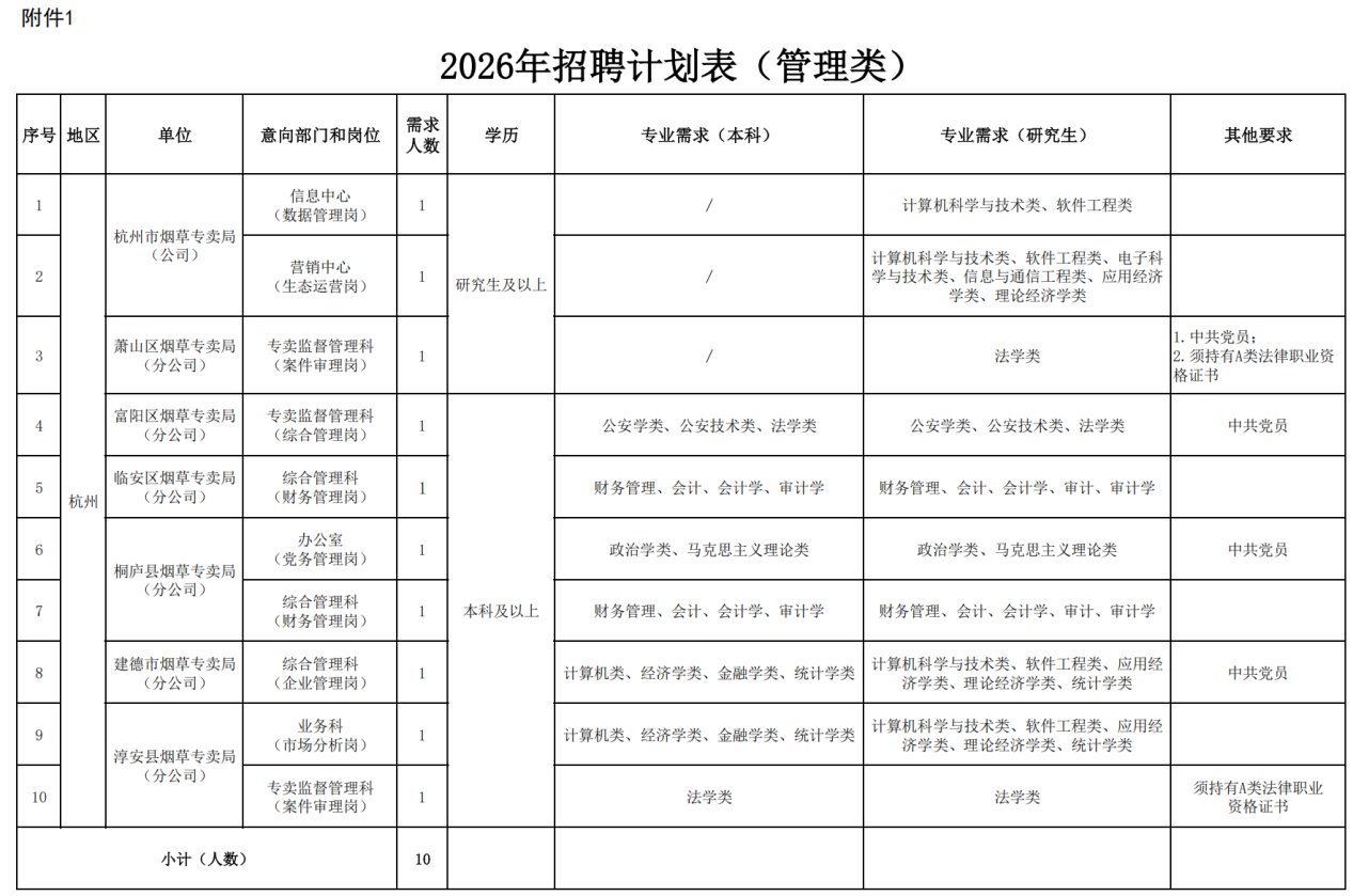 浙江省烟草专卖局(公司)2026年管理类岗位招聘公告