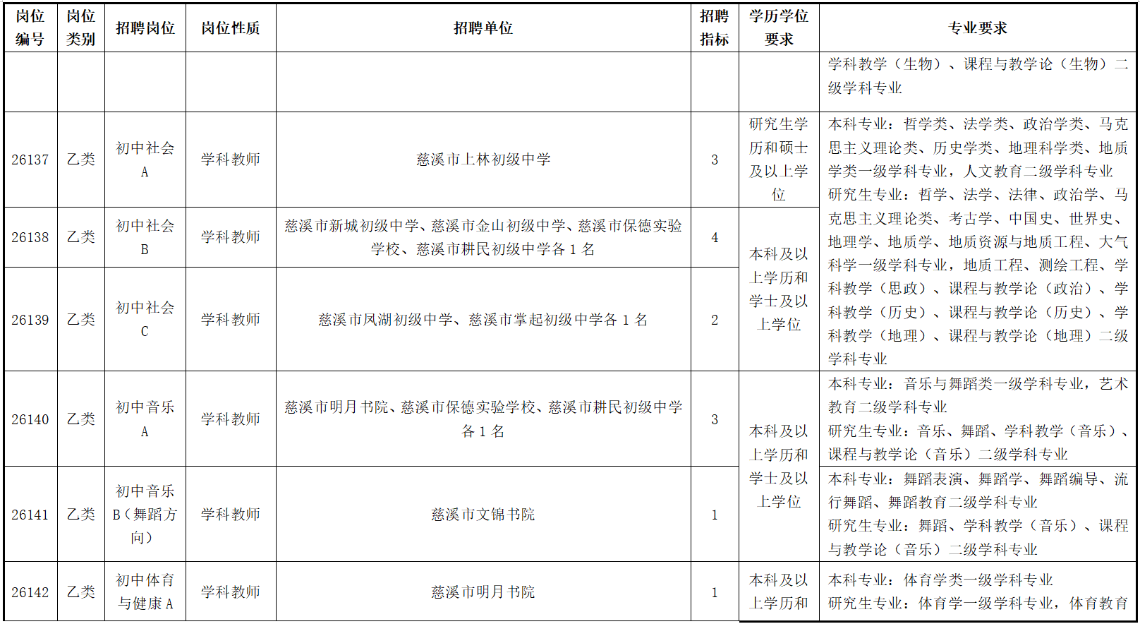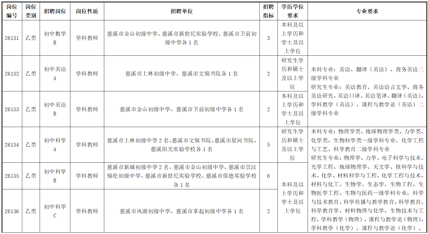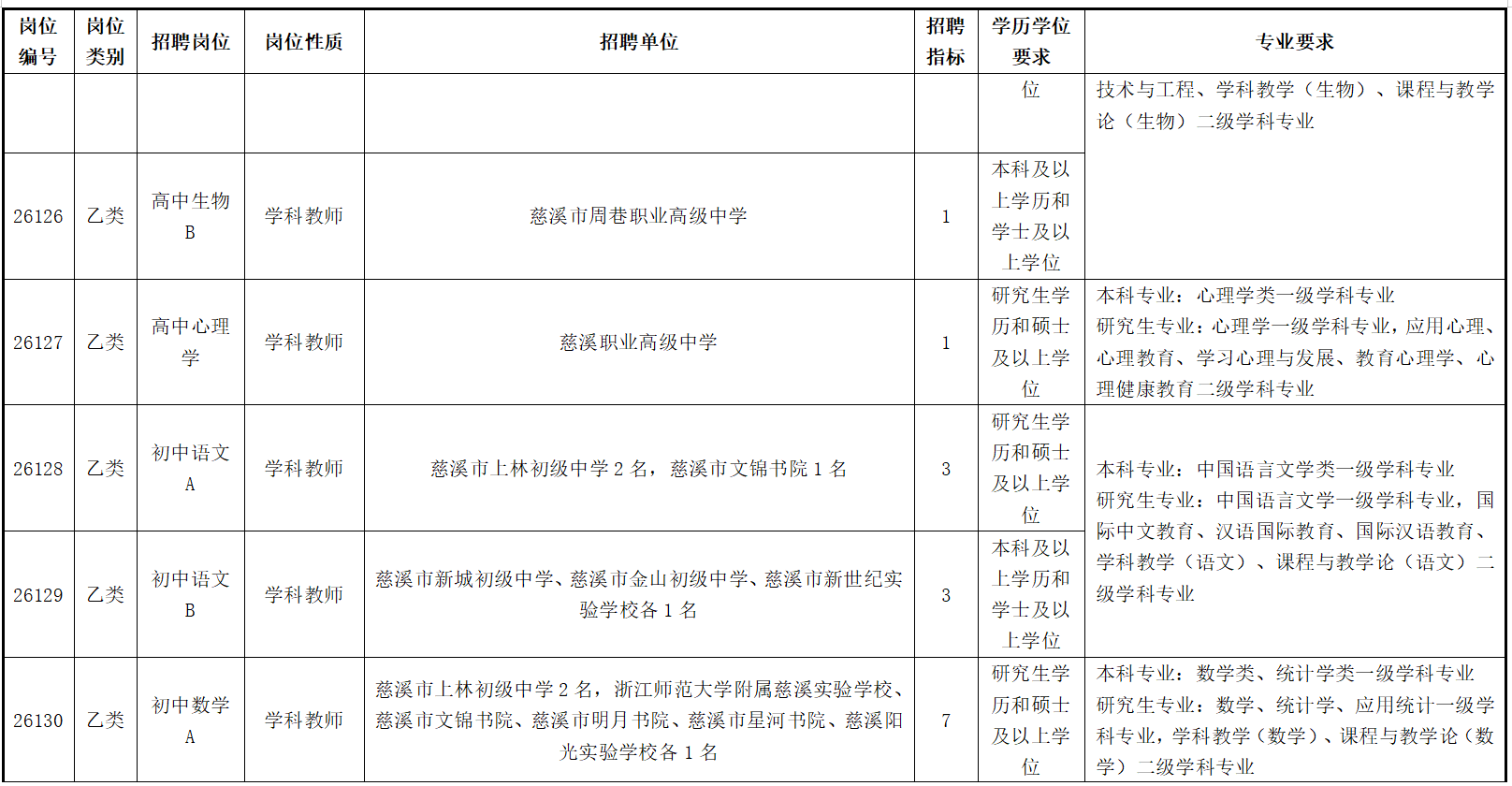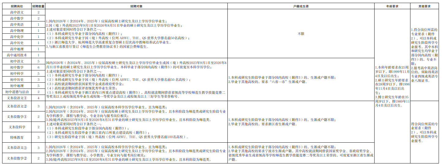 慈溪市公开招聘2026年教师(第一批)公告