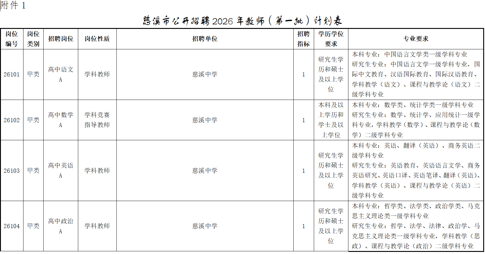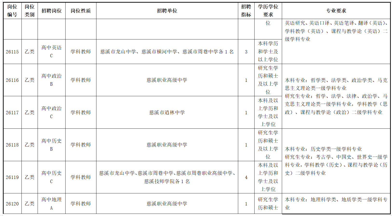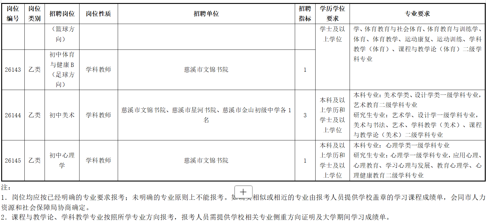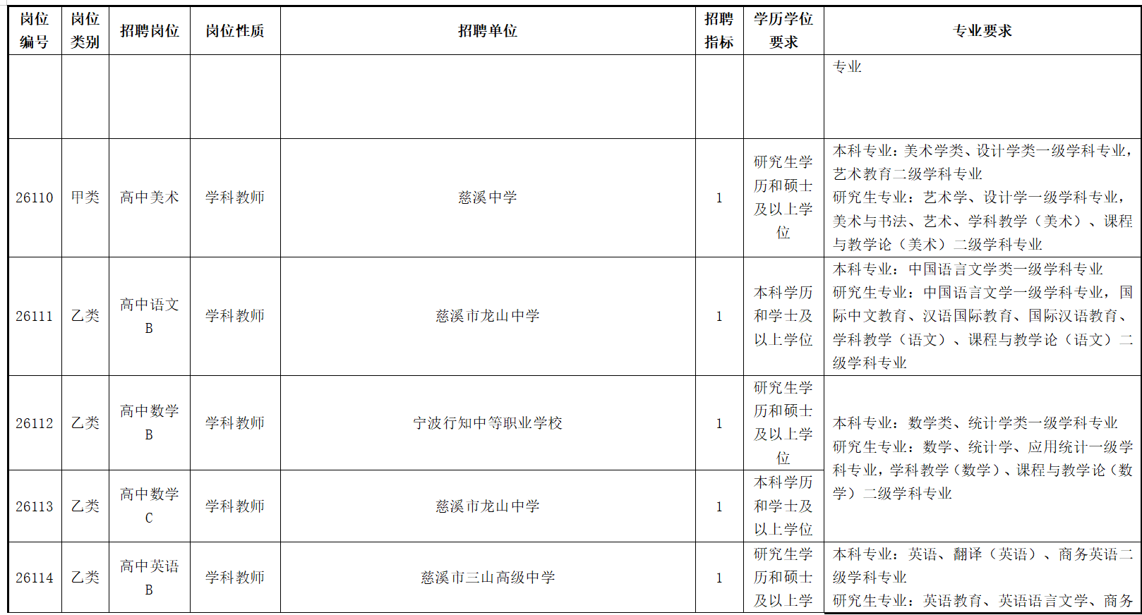 慈溪市公开招聘2026年教师(第一批)公告