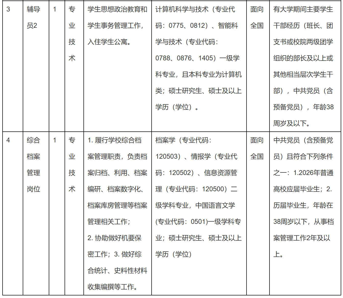 (一)招聘人数:4人