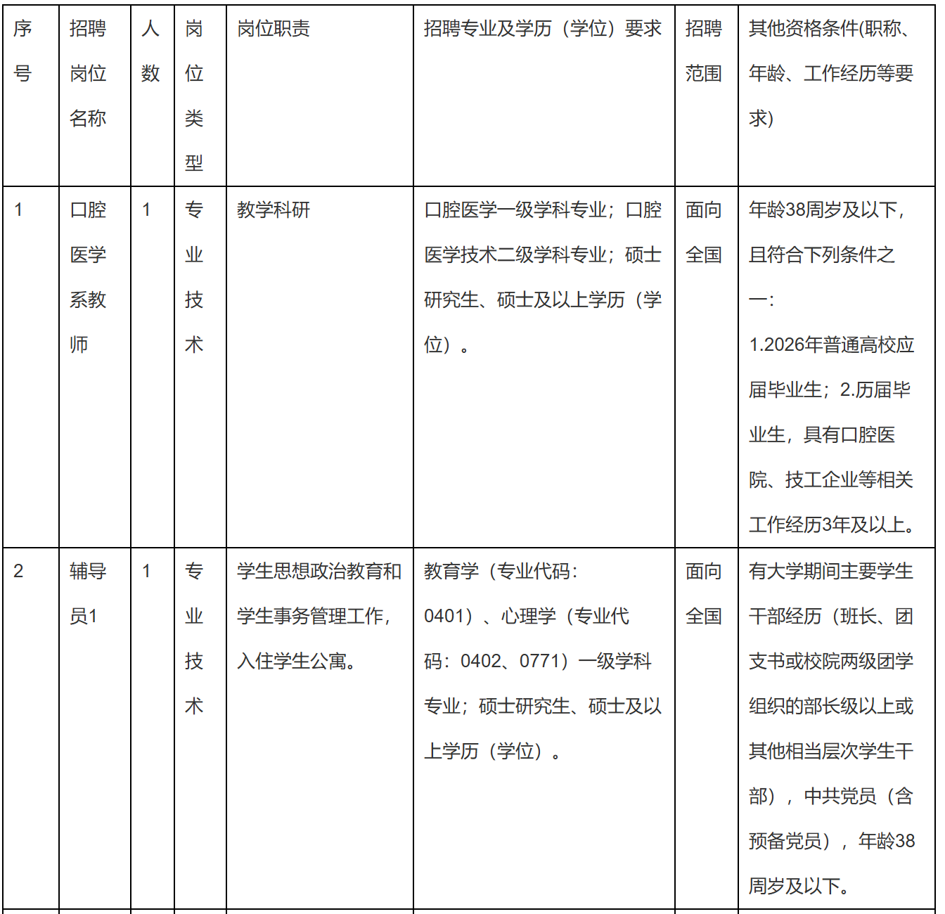 (一)招聘人数:2人
