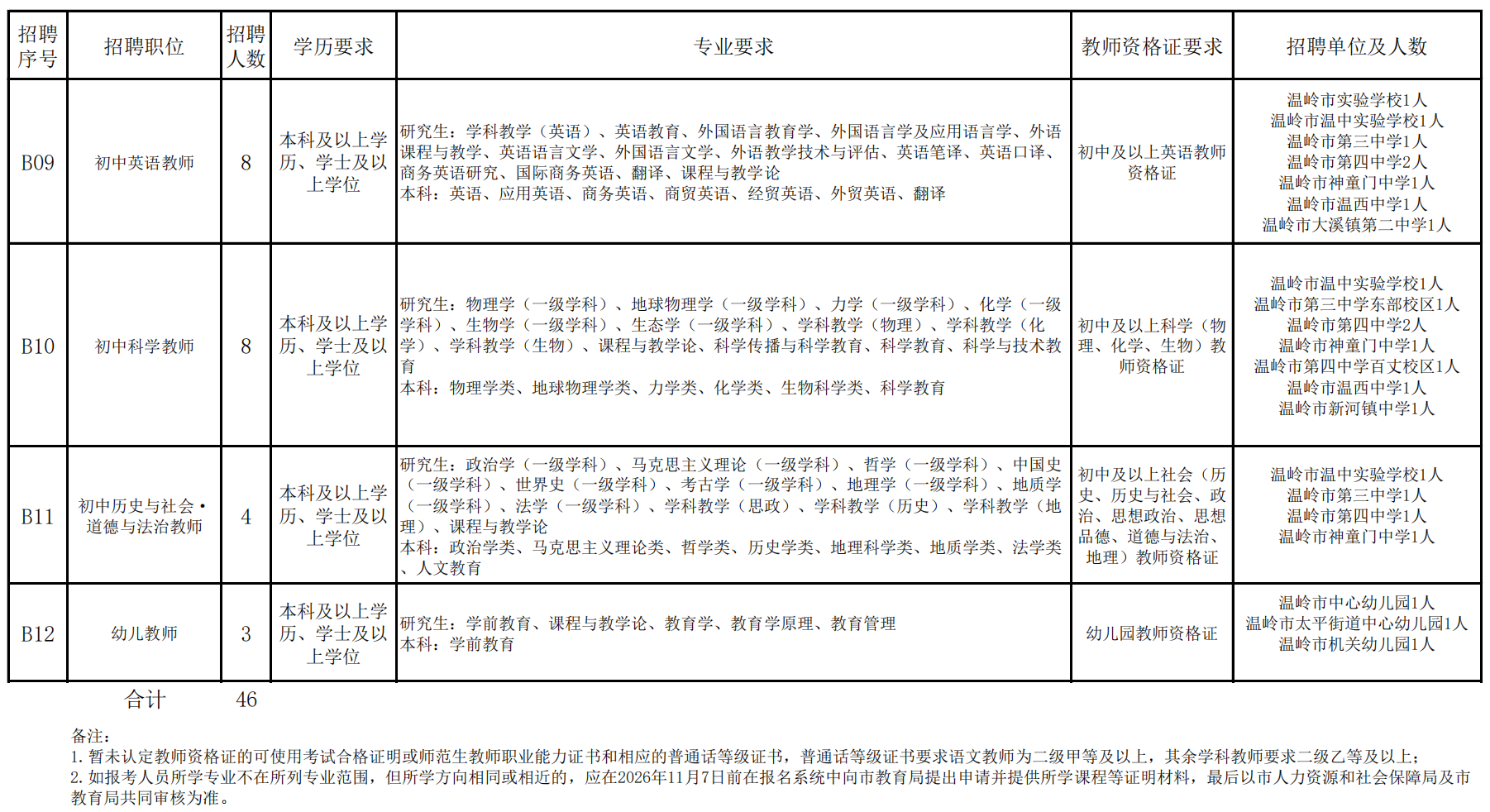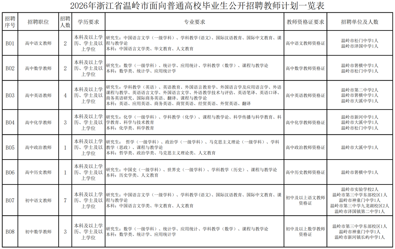2026年浙江省温岭市面向普通高校毕业生公开招聘教师公告