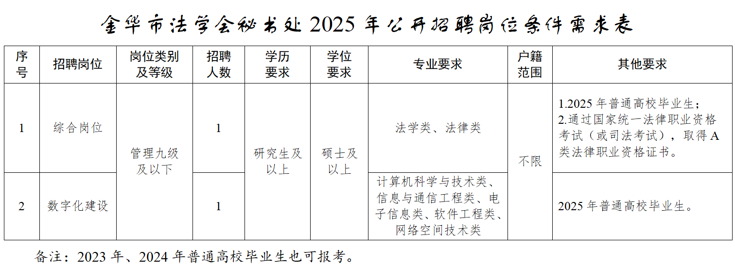中共金华市委政法委员会所属金华市法学会秘书处2025年公开招聘工作人员公告
