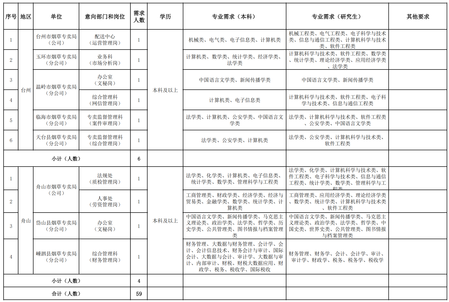 (一)招聘人数:59人