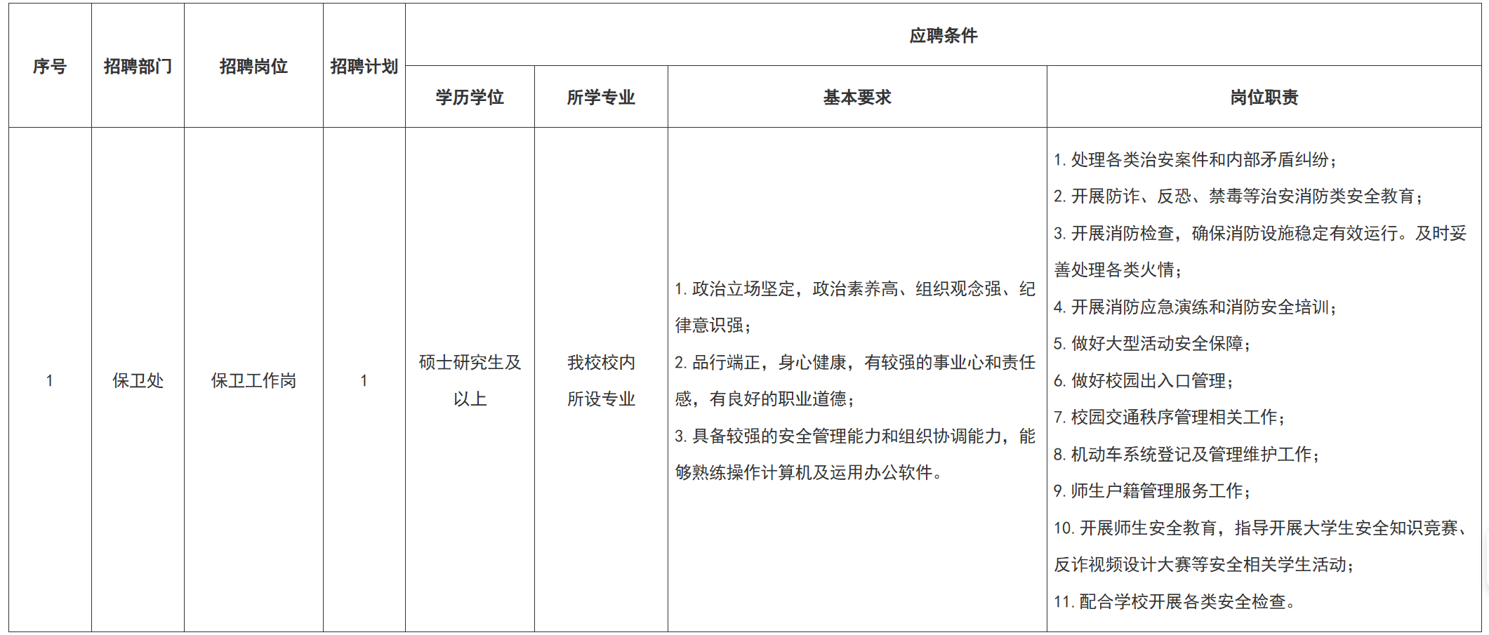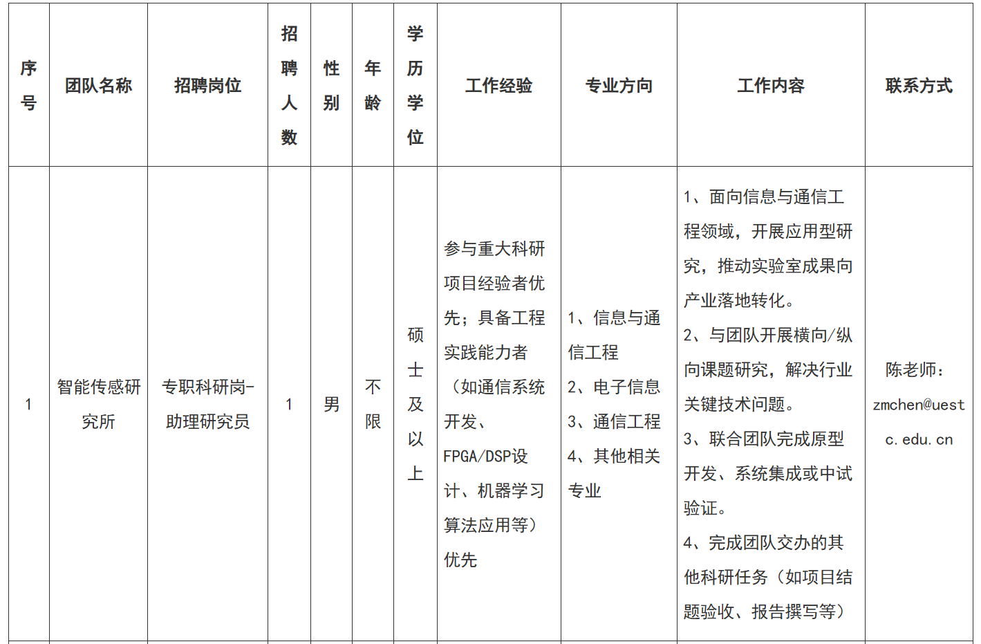 (一)招聘人数:1人