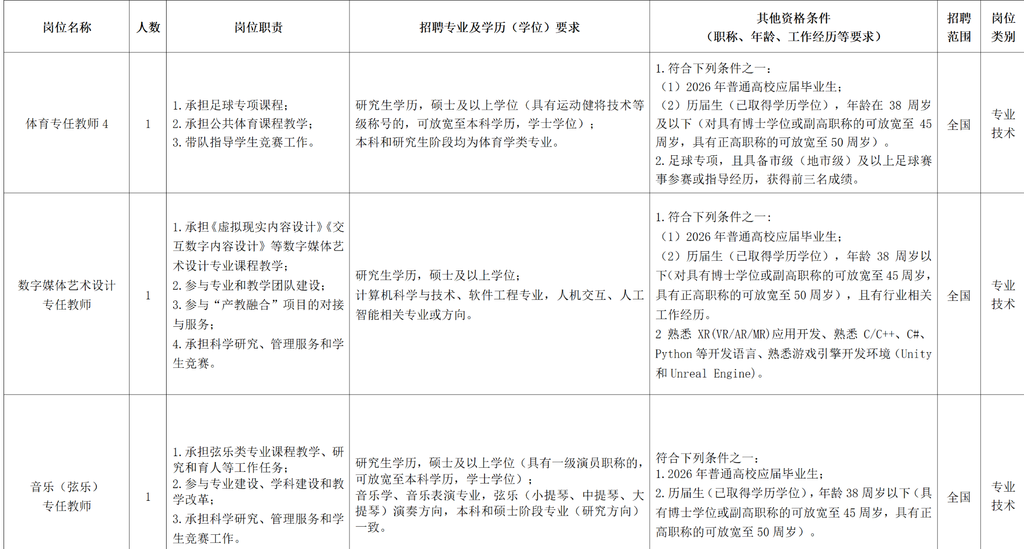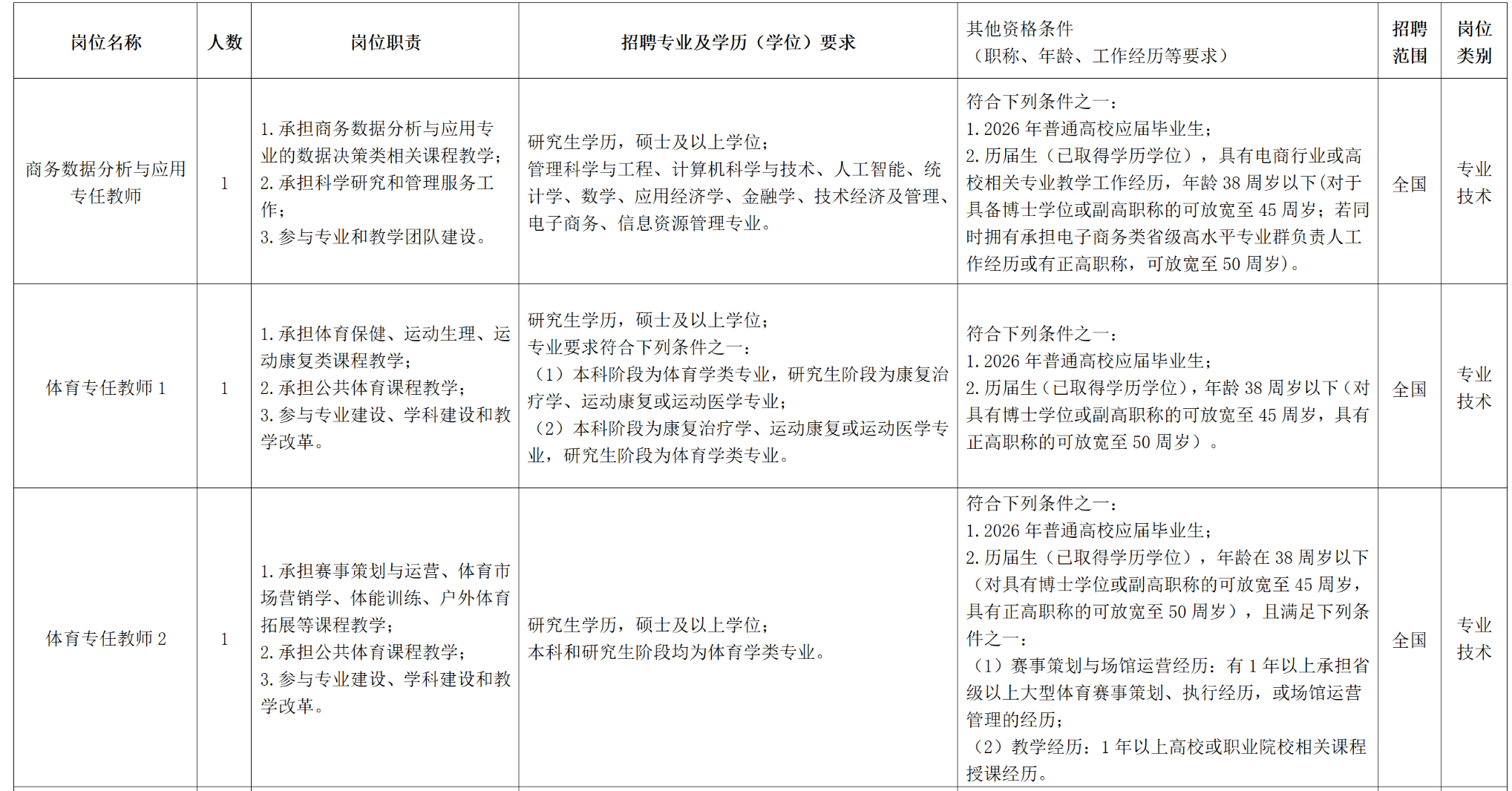浙江宇翔职业技术学院2025-2026学年教师招聘计划