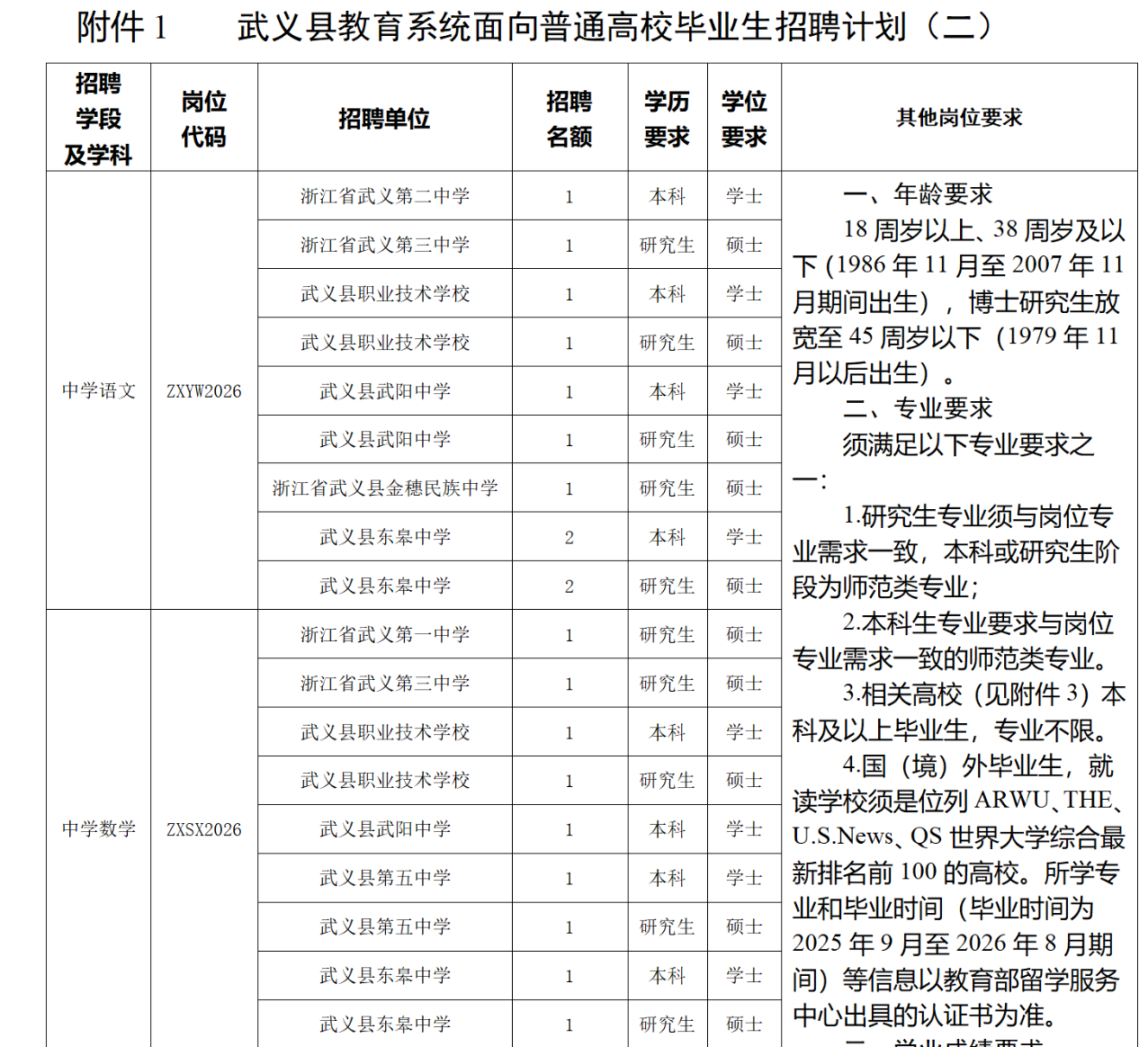 2025学年武义县教育系统校园招聘公告 (第二批)