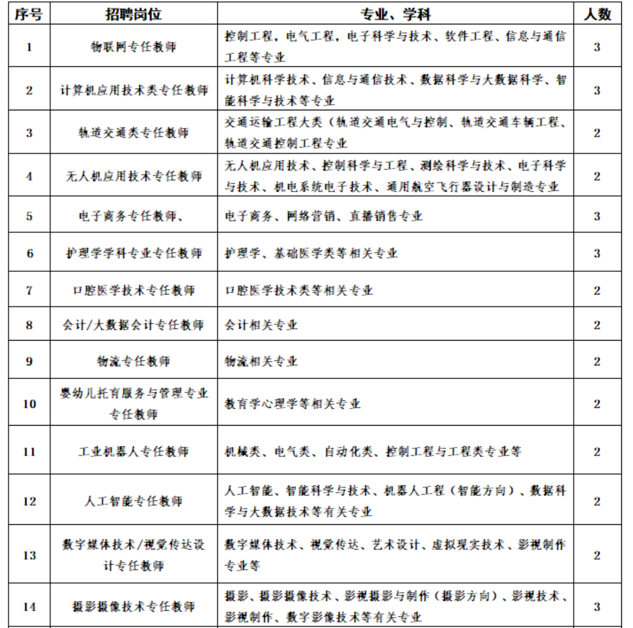 (一)招聘人数:2人
