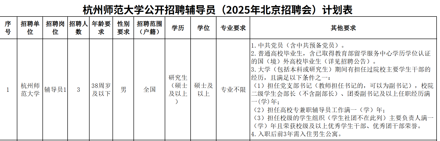 杭州师范大学公开招聘辅导员公告(2025年北京招聘会)