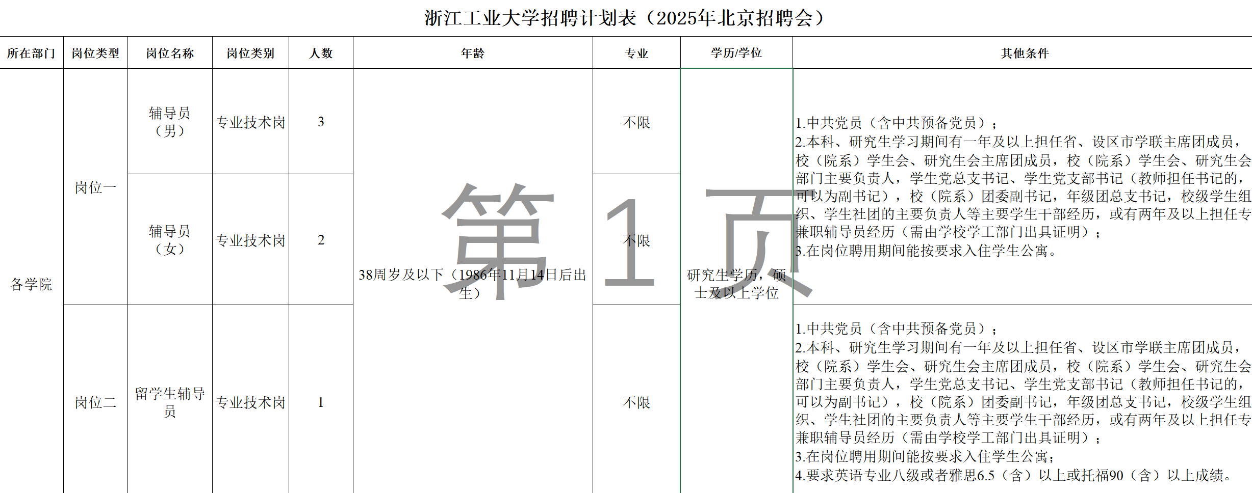 浙江工业大学公开招聘人员公告(2025年北京招聘会)