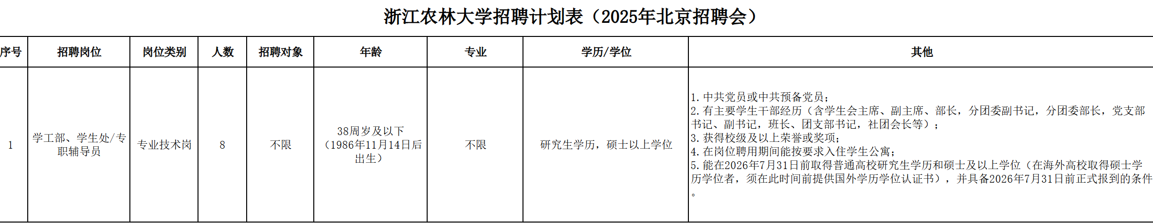 浙江农林大学公开招聘人员公告(2025年北京招聘会)