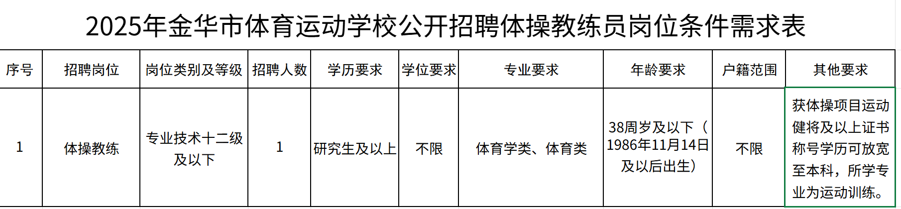 2025年金华市体育局所属事业单位公开招聘体操教练员公告