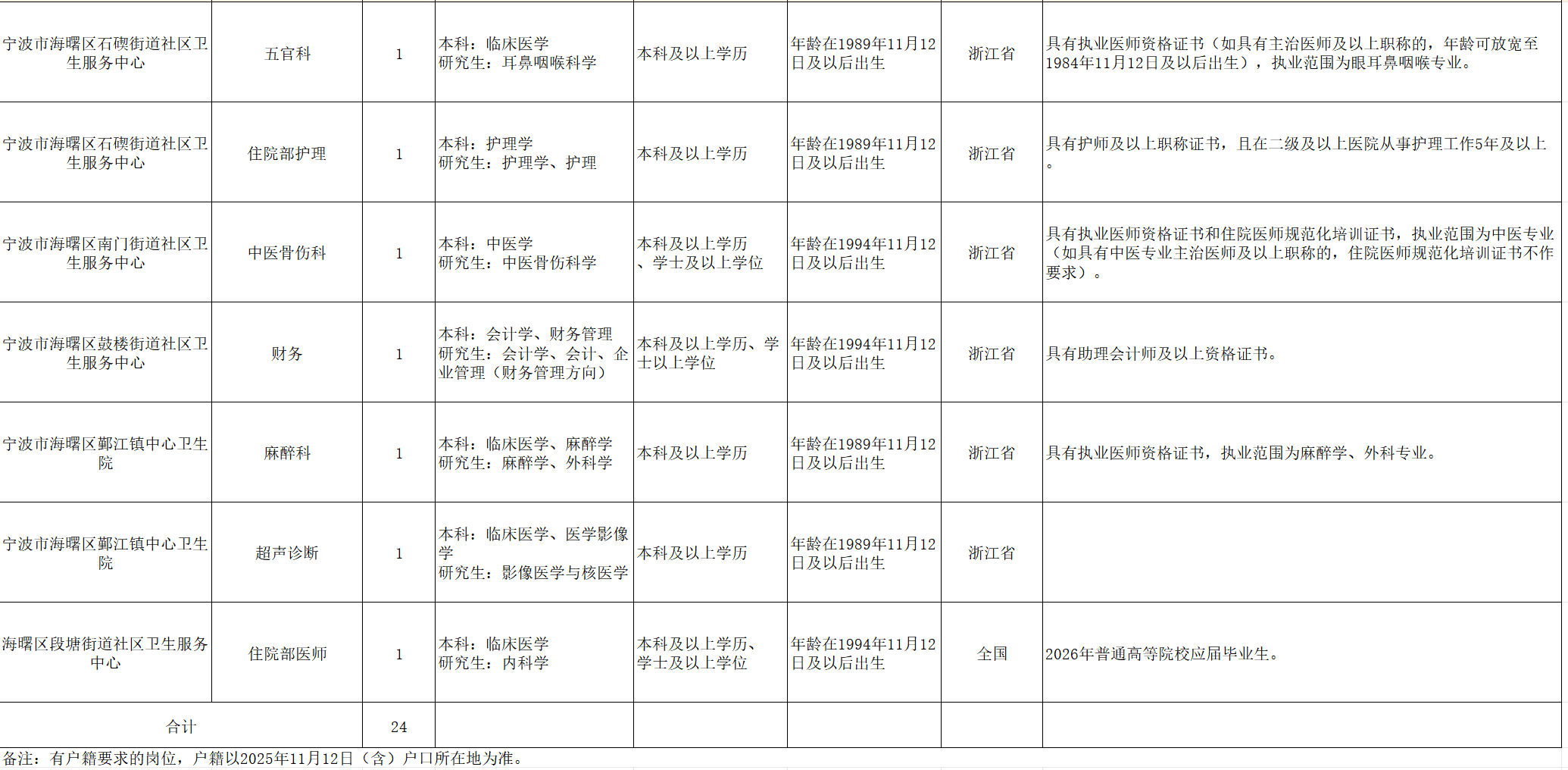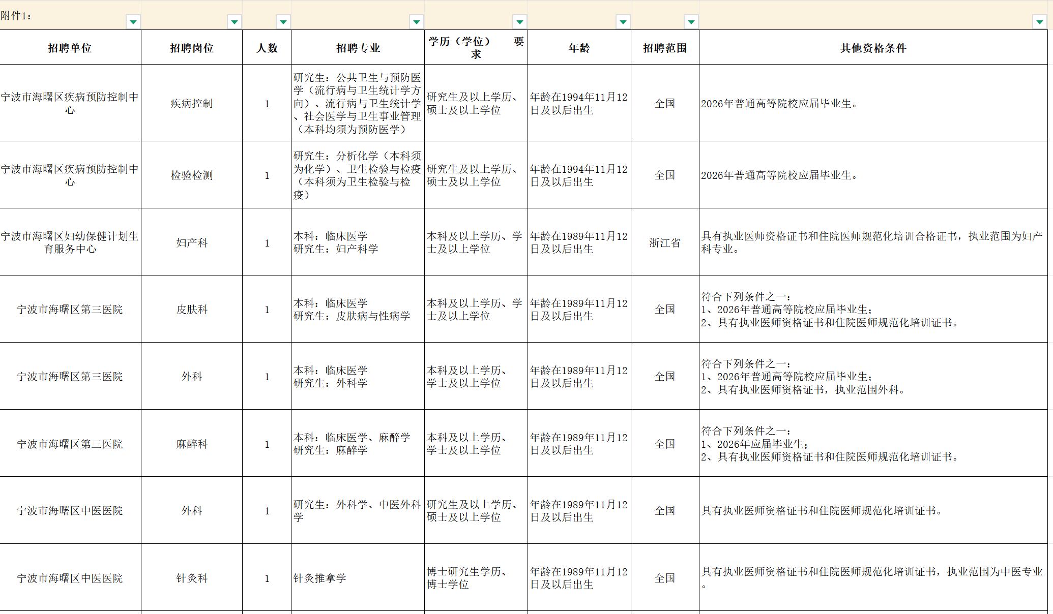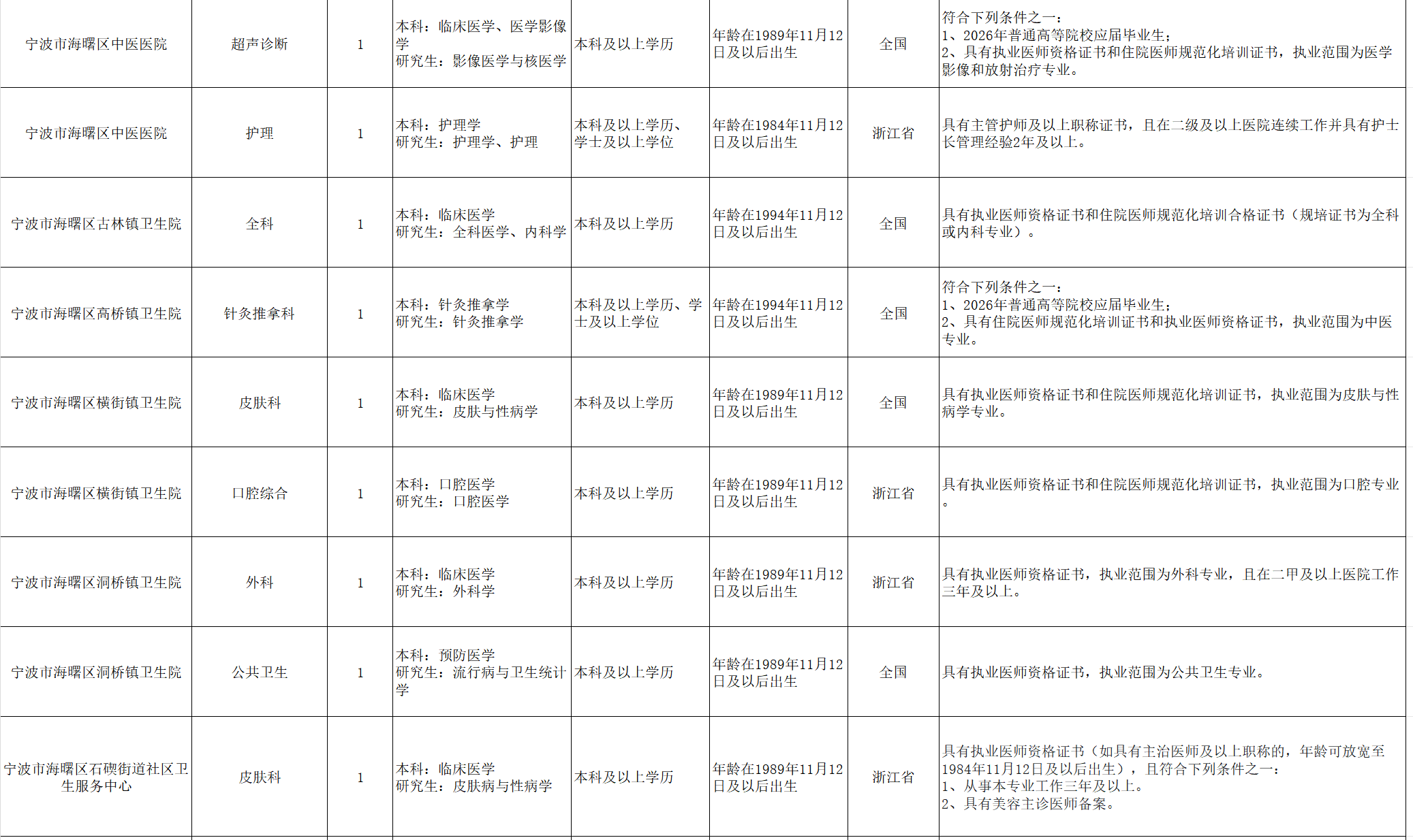 宁波市海曙区卫生健康局下属医疗卫生单位 2025年第一次公开招聘事业编制专业技术人员公告