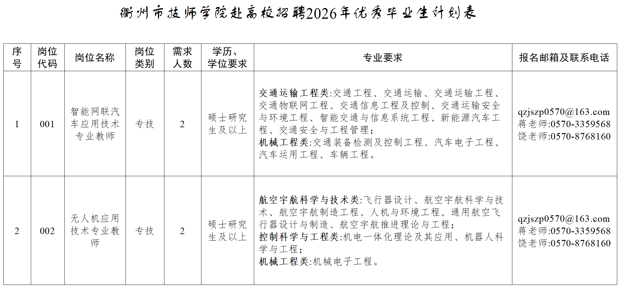 浙江省衢州市技师学院关于赴高校招聘2026年优秀毕业生的公告