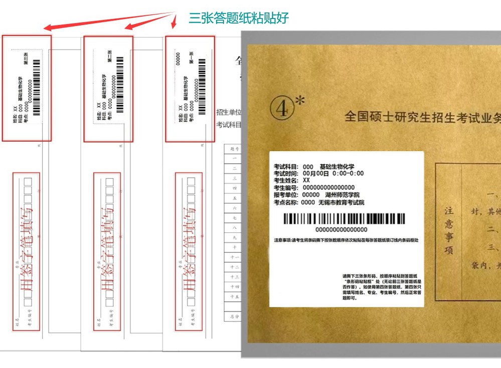 2026年全国硕士研究生招生考试(初试)将于2025年12月20日至21日举行。现将我校自命题考试科目“答题纸条形码粘贴”和“部分自命题科目文具使用说明”相关事宜通知如下。请认真阅读并按要求执行,特别应确保前三张答题纸无论是否答题都要粘贴条形码。