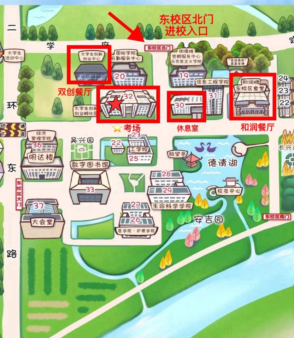 1.考点入口:东校区北门(学府路)。非考生(陪考人员)和外来车辆请勿进入校园。