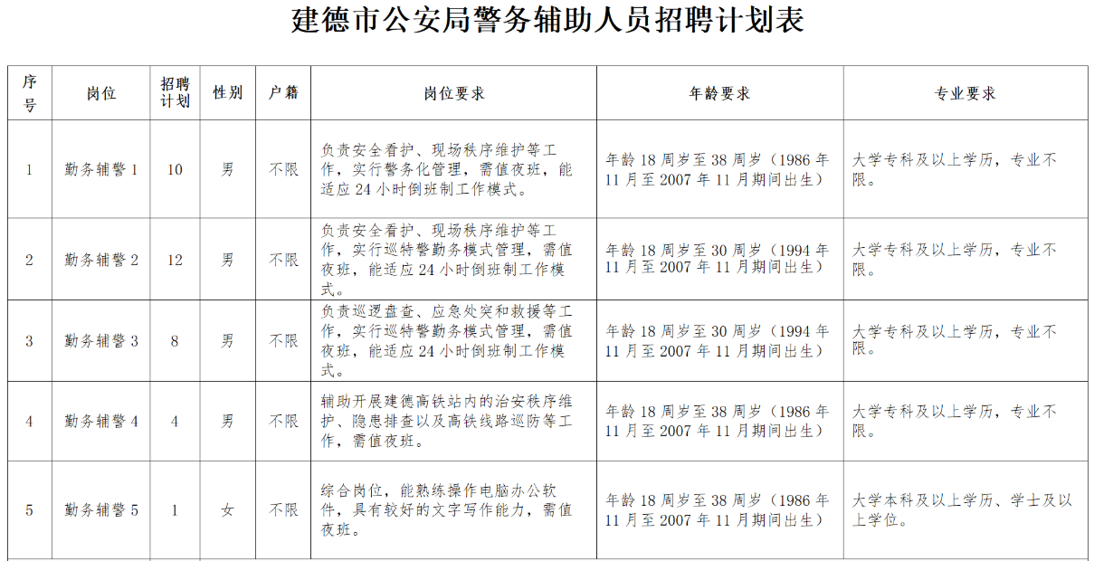 2025年建德市公安局集中招聘警务辅助人员公告: