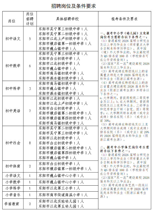 东阳市教育系统面向2026年普通高校优秀毕业生招聘公告(二)。