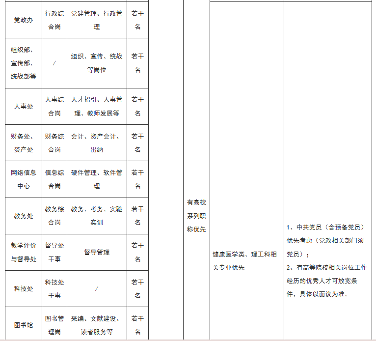 (一)招聘人数:若干名