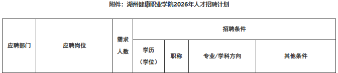 湖州健康职业学院2026年人才招聘启事。
