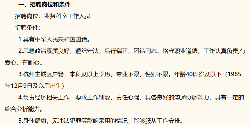 杭州市上城区商务局编外人员招聘公告。