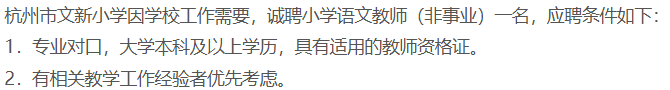 杭州市文新小学招聘语文教师(非事业)。